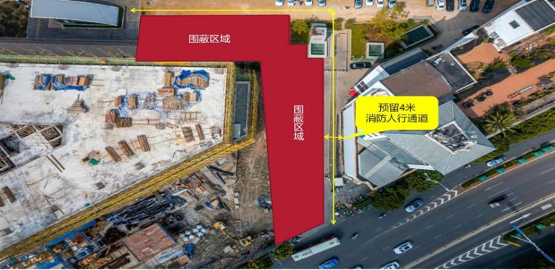 2.大华翠映中心与一二一数码城中间预留4m人行通道,上方搭设安全通道防护棚,出入地铁人员从该位置通行。
